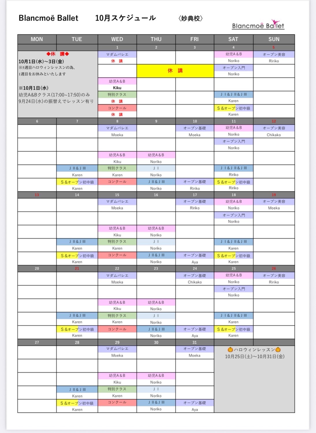 ※5週目ハロウィンレッスンの為、1週目をお休みといたします