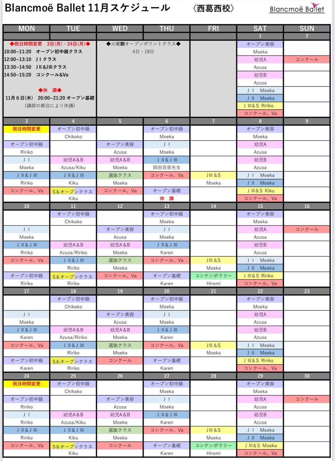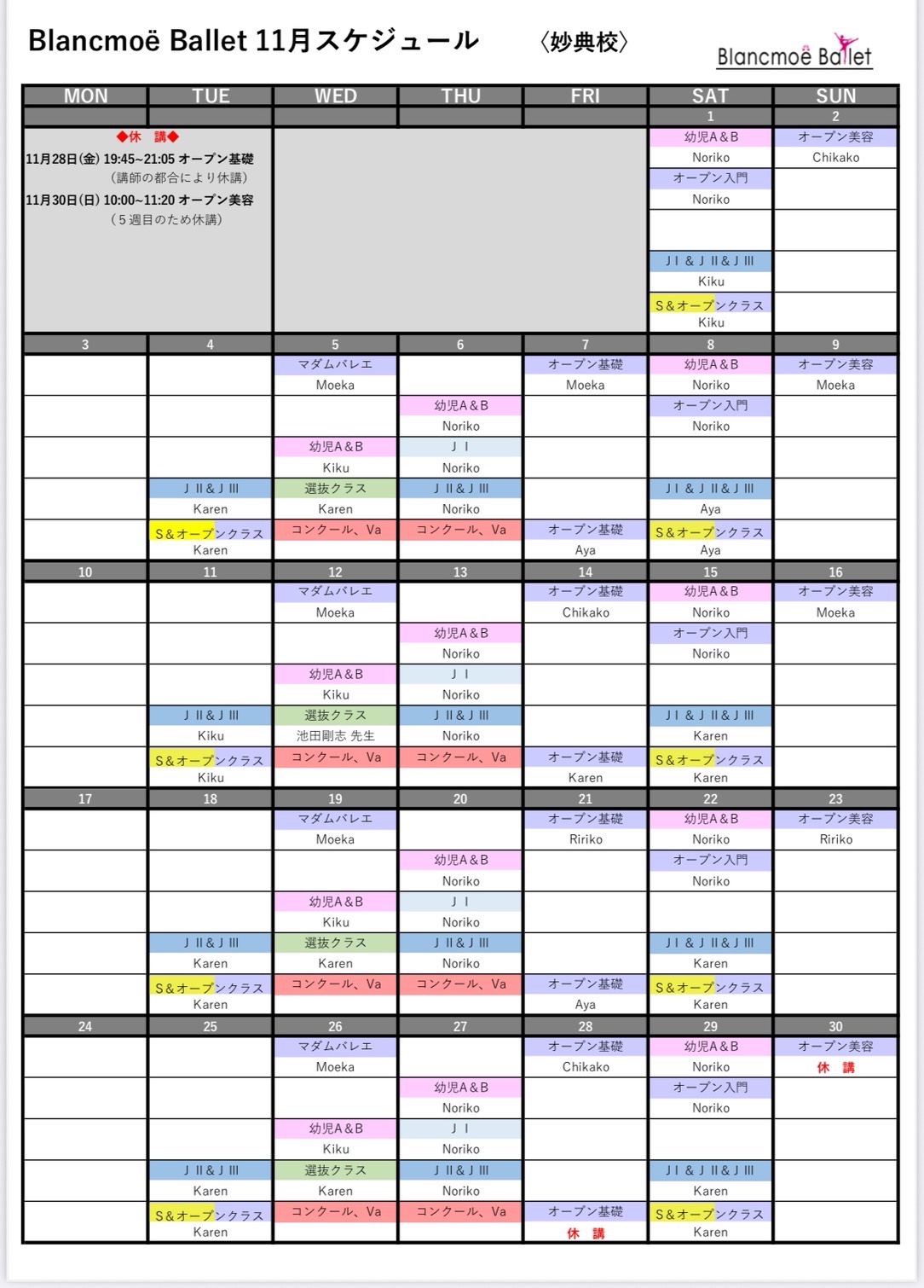 12月27日(土)は休講となるため、その振替として11月の土曜日は5週目もレッスンを行います